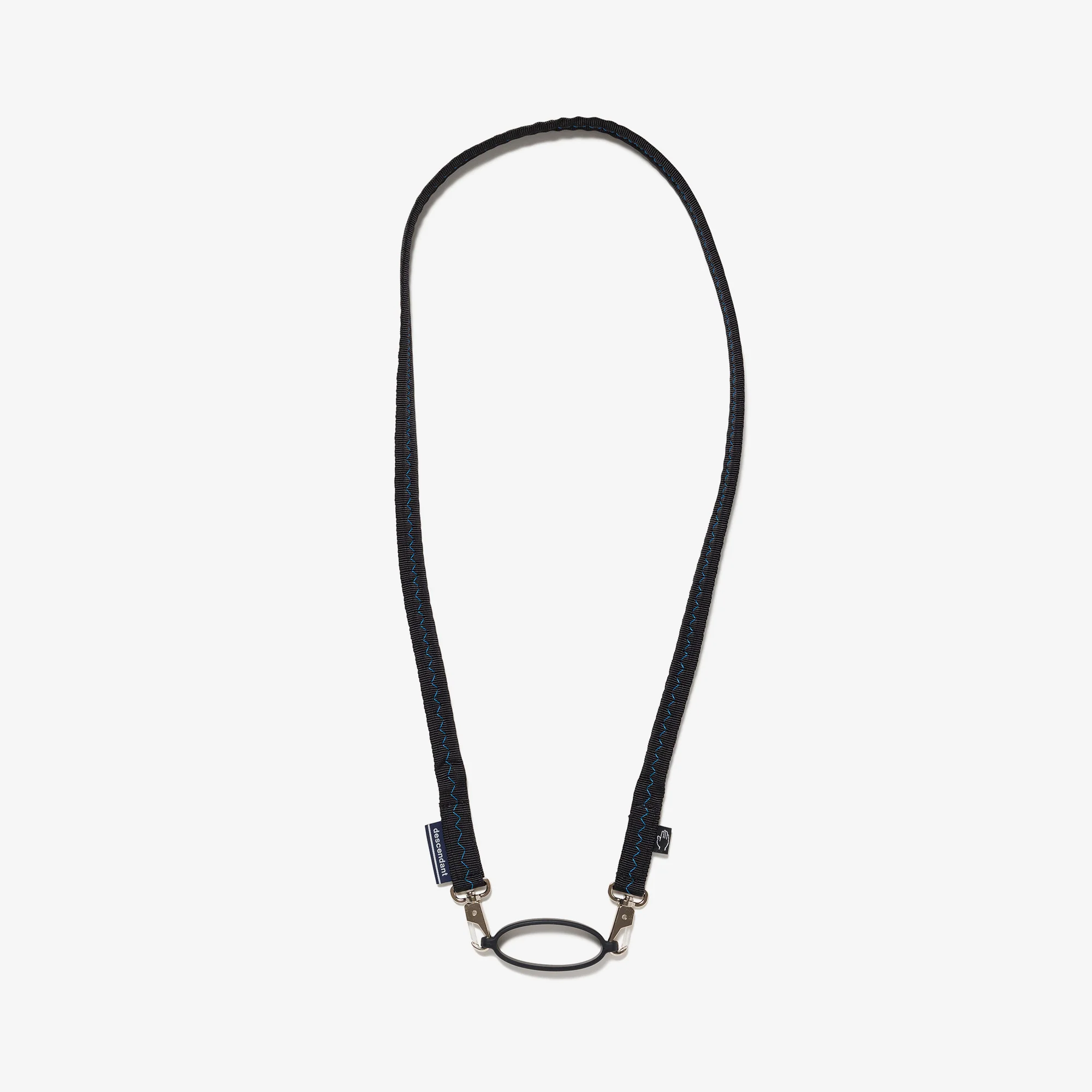 A strap created in collaboration with TAKES HANDS and can be used for a variety of purposes, such as with a HYDRO FLASK bottle and smartphone. The strap is made up of a removable rubber ring and a zigzag stitched strap. Both ends of the strap have a HORIZON and TAKES HANDS label attached.